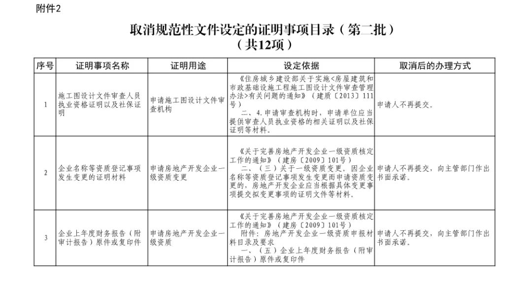 住建部取消96个证明事项,涉及资质申报、执业注册