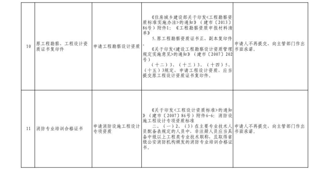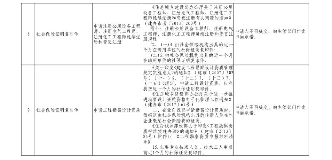 1、工程勘察设计资质:不再提交社会保险证明复印件、原工程勘察、工程设计资质证书复印件,改为书面承诺。
