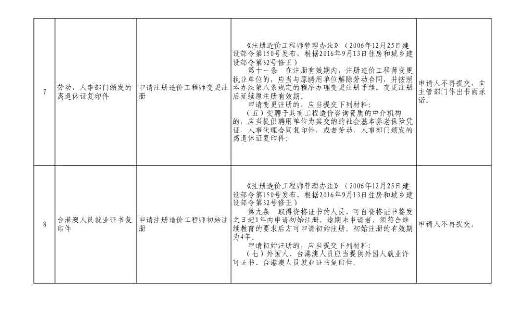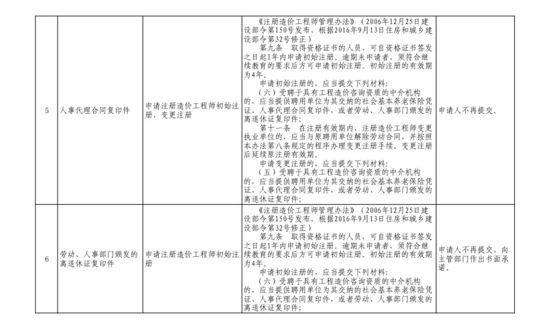 · 初始注册、变更注册:不再提交社会基本养老保险凭证复印件、劳动/人事部门颁发的离退休证复印件,改为书面承诺;不再提交人事代理合同复印件、台港澳人员就业证书复印件。