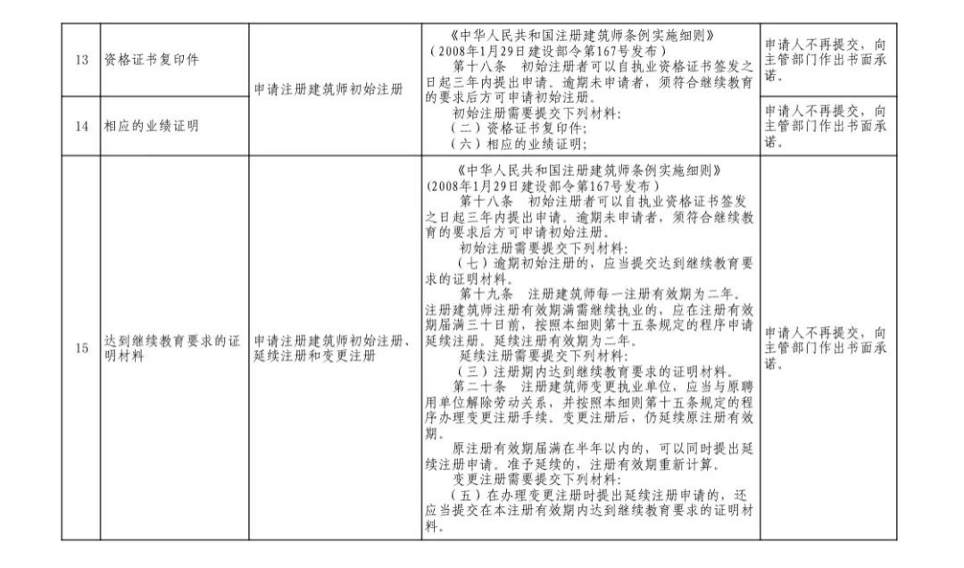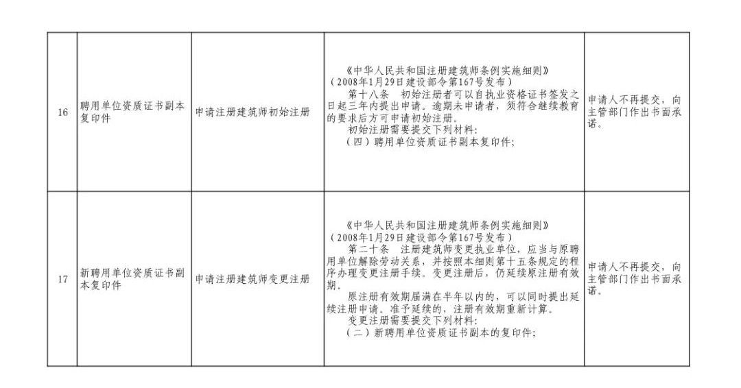 · 初始注册:不再提交资格证书复印件、相应的业绩证明、聘用单位资质证书副本复印件,改为书面承诺。